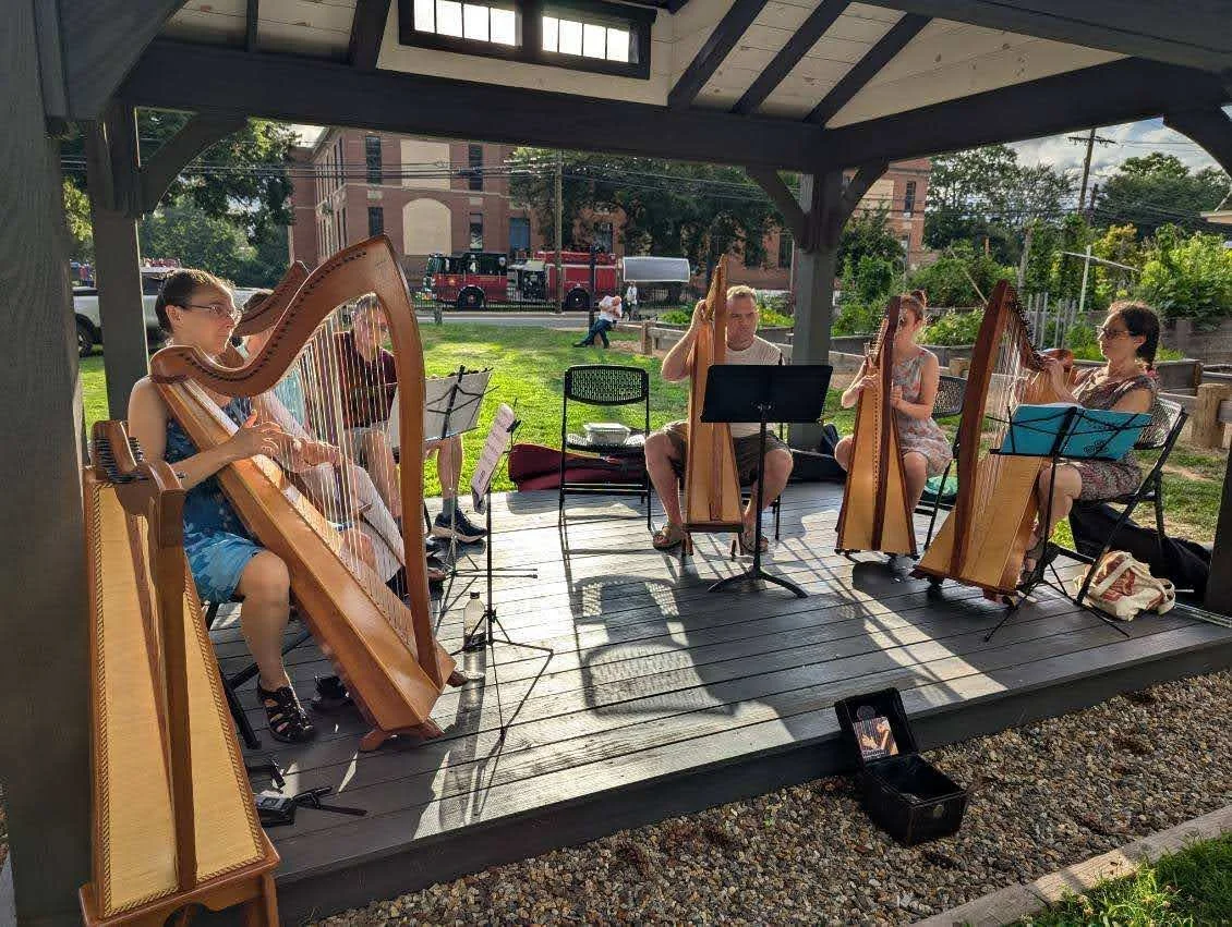The CT Harp Circle is a friendly group of area harpers who meet monthly to share tunes, news and camaraderie. We frequently play out in the community at farmers’ markets and festivals. Get in touch to find out about our next meeting and upcoming events. We hope you join the fun!